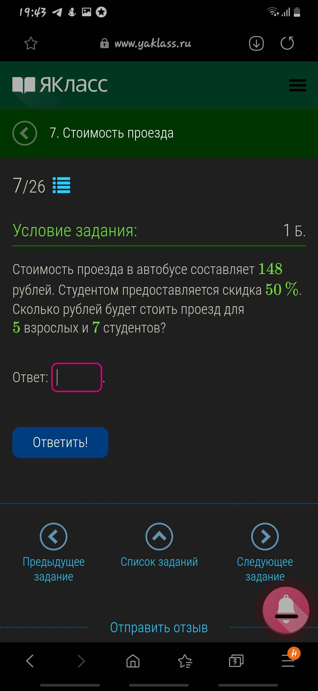 74*7=518 ( стоимость проезда за 7 студентов)