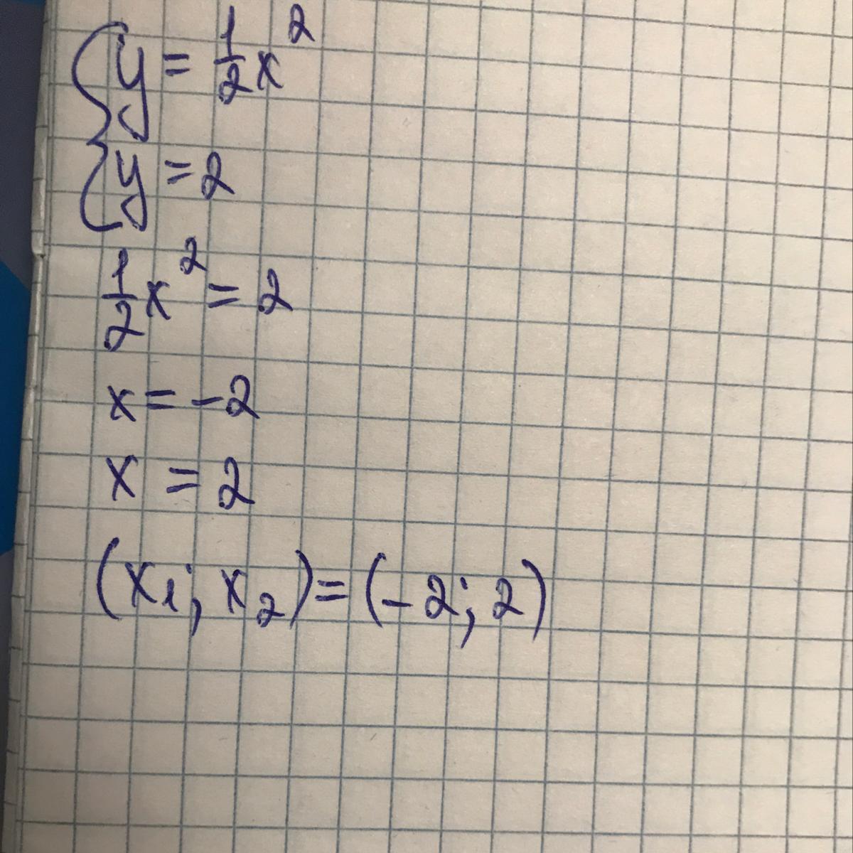 Получаем 2=1/2х^2 ну и отсюда х1 и х2