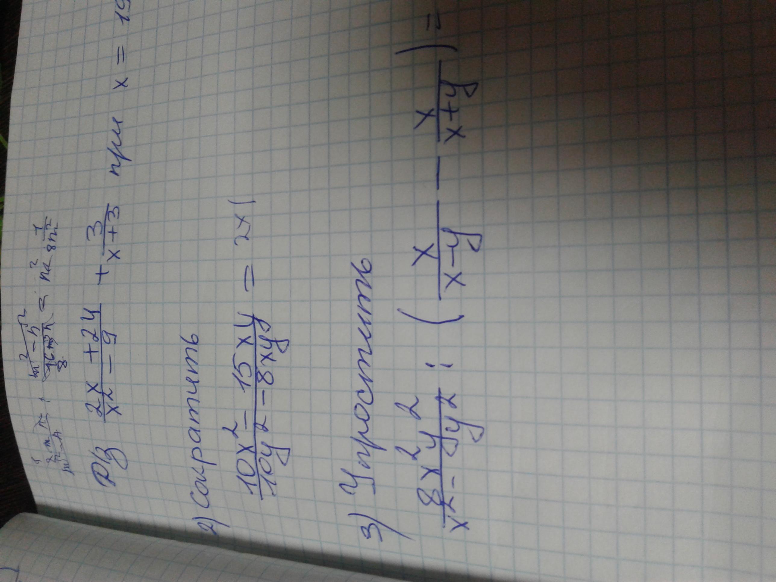 2)8x²y²/(x-y)(x+y):(x²+xy-x²+xy)/(x-y)(x+y)=4xy