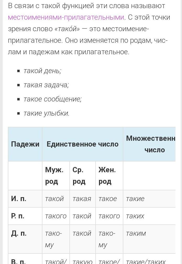 В русском языке к указательным местоимениям относятся слова ЭТОТ, ТОТ, ТАКОЙ, ТАКОВ, СТОЛЬКО, СЕЙ (устаревшее). Все указательные местоимения, кроме местоимения СТОЛЬКО, изменяются по числам, родам (в единственном числе) и падежам также, как имена прилагательные.