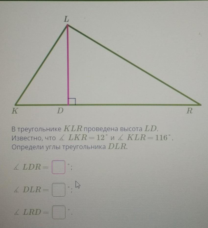 Ответ: Угол LDR = 90 градусов (так как LD высота)