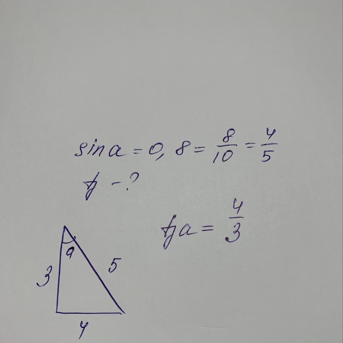 ПОМОГИТЕ ПЖ ПЖ ПЖ ПЖ ПЖ! ВОТ условие: Знайдіть тангенс гострого кута альфа якщо сінус альфа дорівнює 0,8
