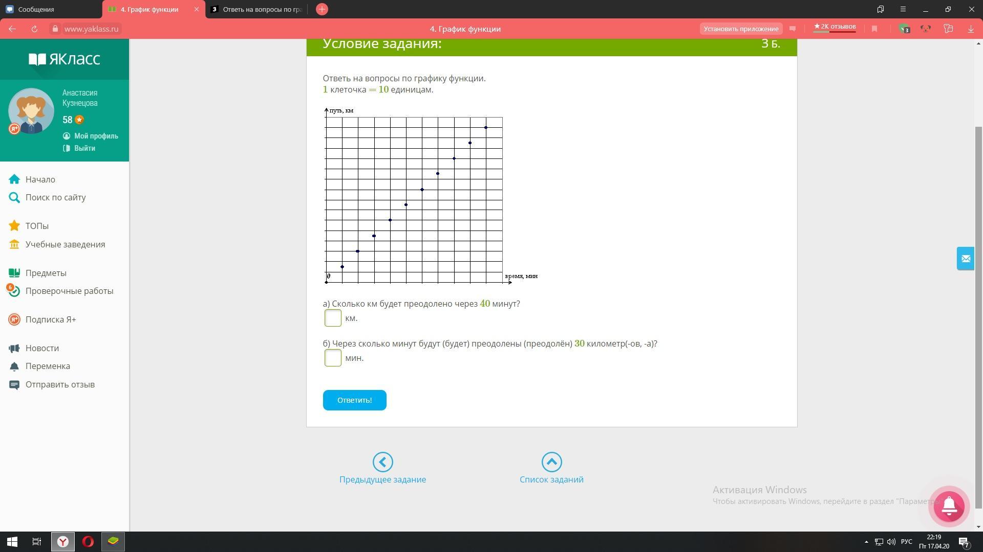 б) Через сколько минут будут (будет) преодолены (преодолён) 30 километр(-ов, -а)?