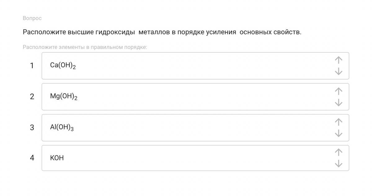 Основные свойства гидроксидов тем сильнее, чем сильнее способность давать в раствор частицу . Самыми сильными являются гидроксиды щелочных металлов, потом идут гидроксиды щелочноземельных металлов, потом амфотерные гидроксиды и, наконец, кислотные гидроксиды, которые являются кислотами и вообще не дают гидроксильных групп.