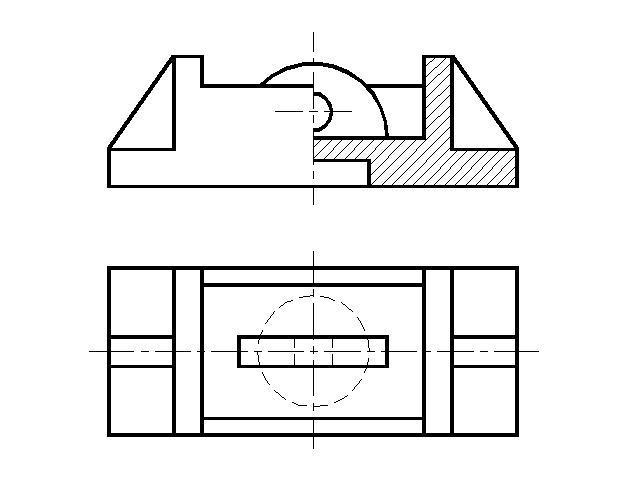 1.Соединить половину фронтального разреза с половиной вида спереди