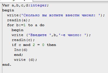 Составить программу нахождения количества чётных цифр числа на языке паскаль
