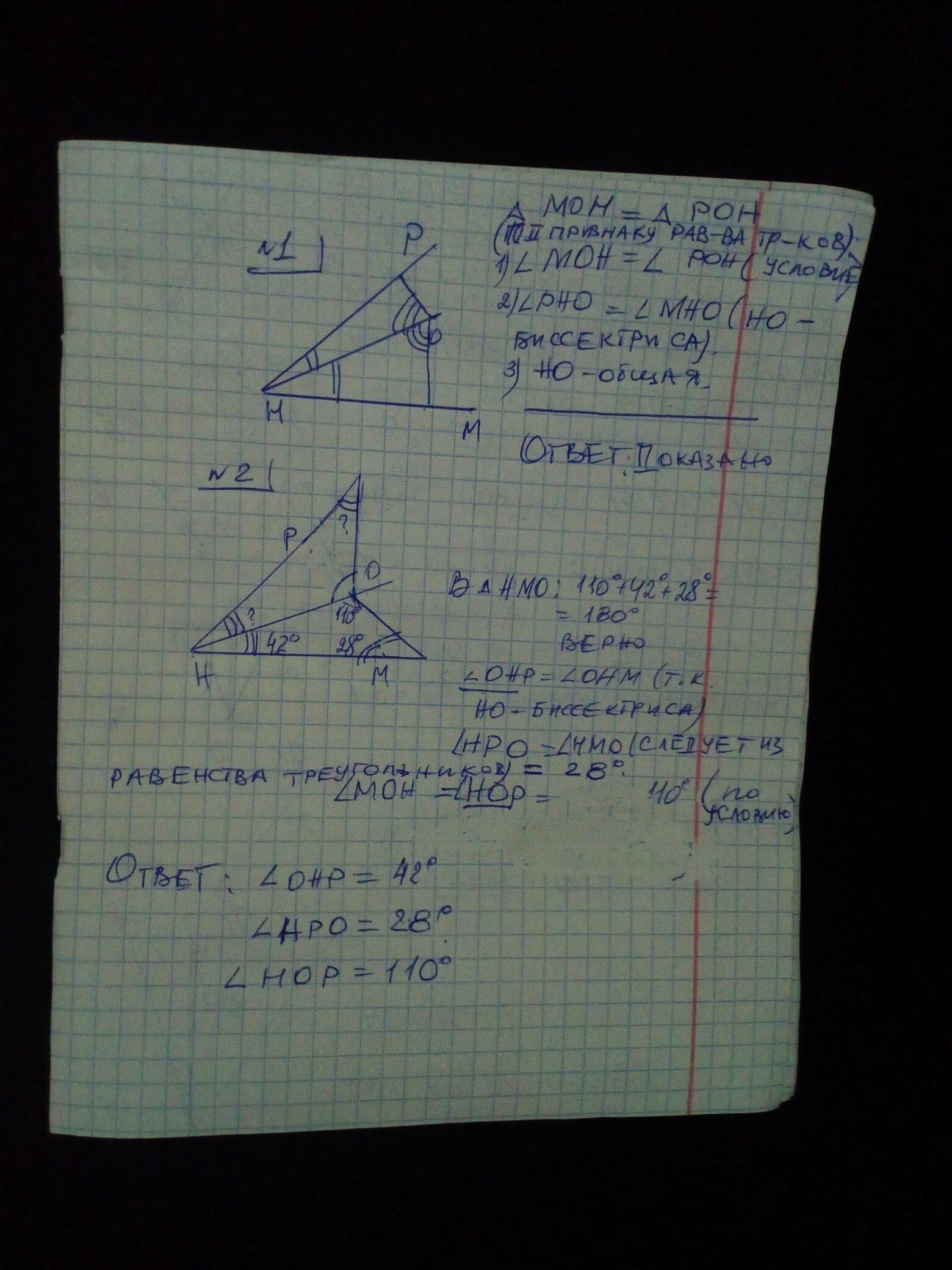 Дано: ˂МОН = ˂ РОН, луч НО – биссектриса ˂ МНР, ˂МНО = 42⁰,