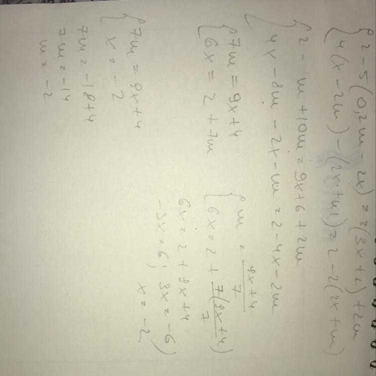 {2−5(0,2m−2x)=3(3x+2)+2m