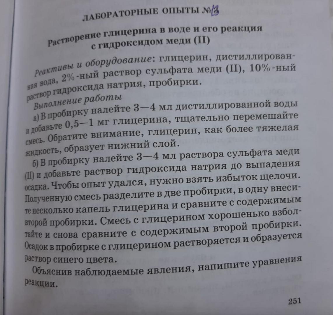 Растворение глицерина в воде и его реакция с гидроксидом меди.написать уравнение реакции