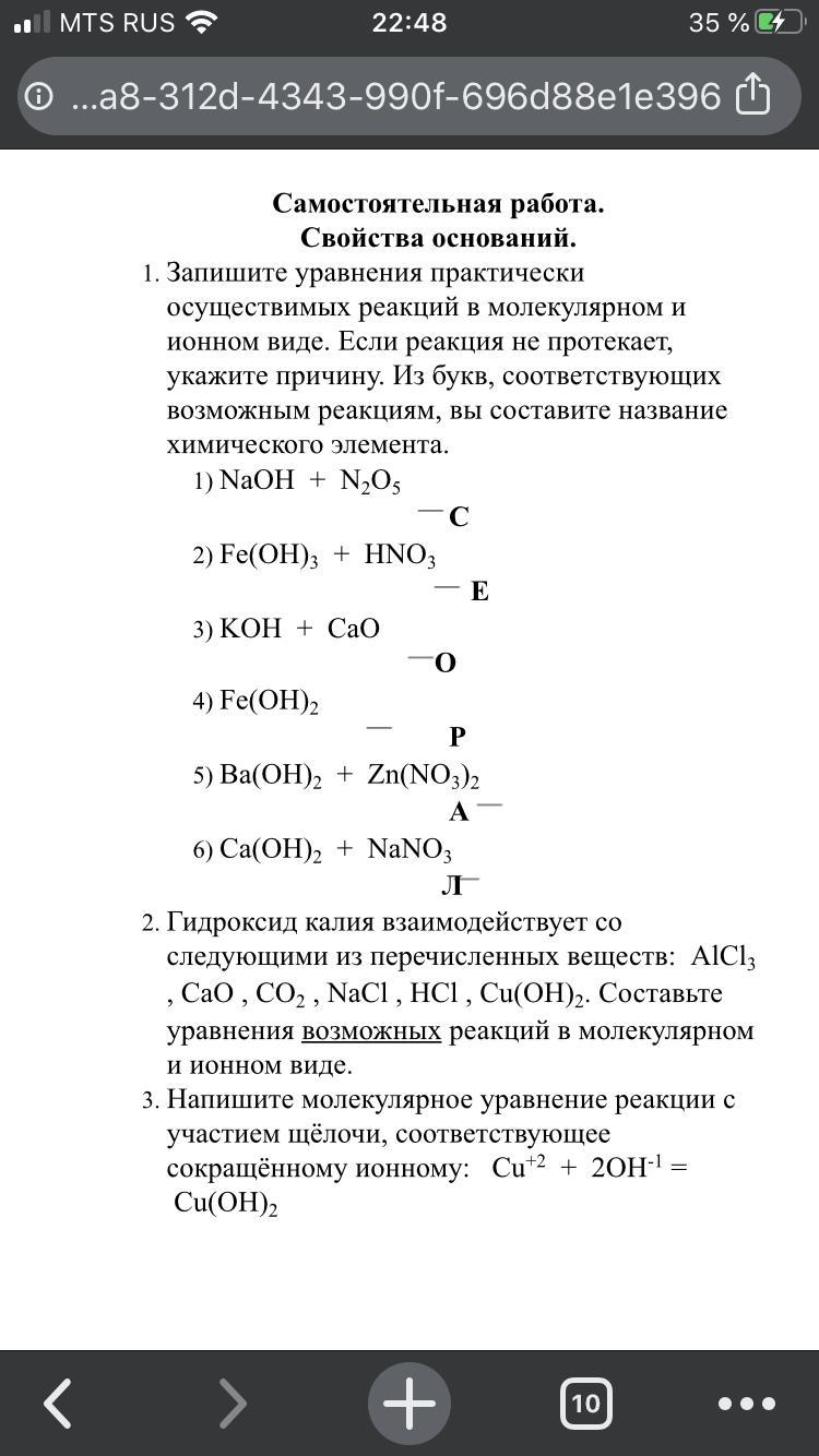 3) щелочь и основный оксид не реагируют