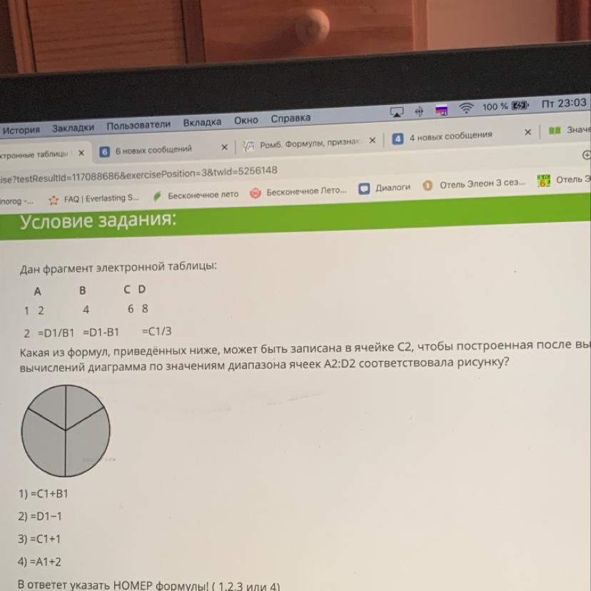 вычислений диаграмма по значениям диапазона ячеек А2:D2 соответствовала рисунку?