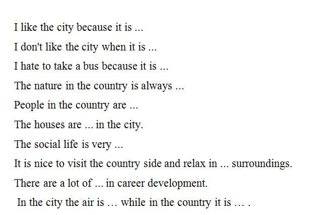 rich, high, small, noisy, crowded, lively, interesting, limited, fascinating, opportunities, busy, energetic, beautiful, clean, dusty.