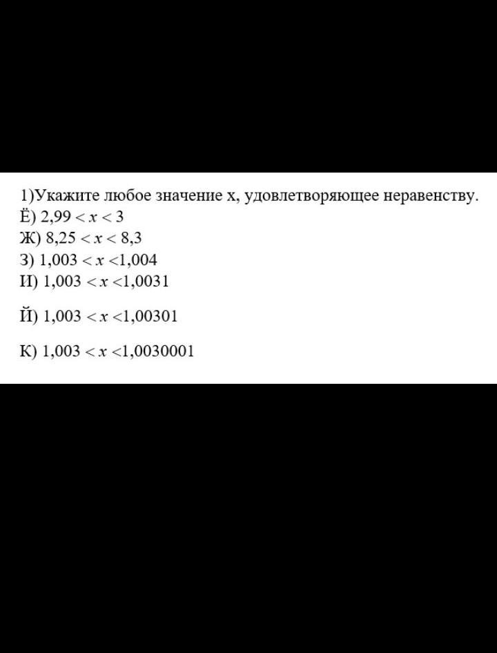Ё) 2,999 Ж) 8,259 З) 1,0039 И)1,00309 Й) 1,003009 К) 1,00300009