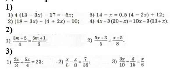 3(3m+5)=4(5m+1) 8(5х+3)=5(х-5)
