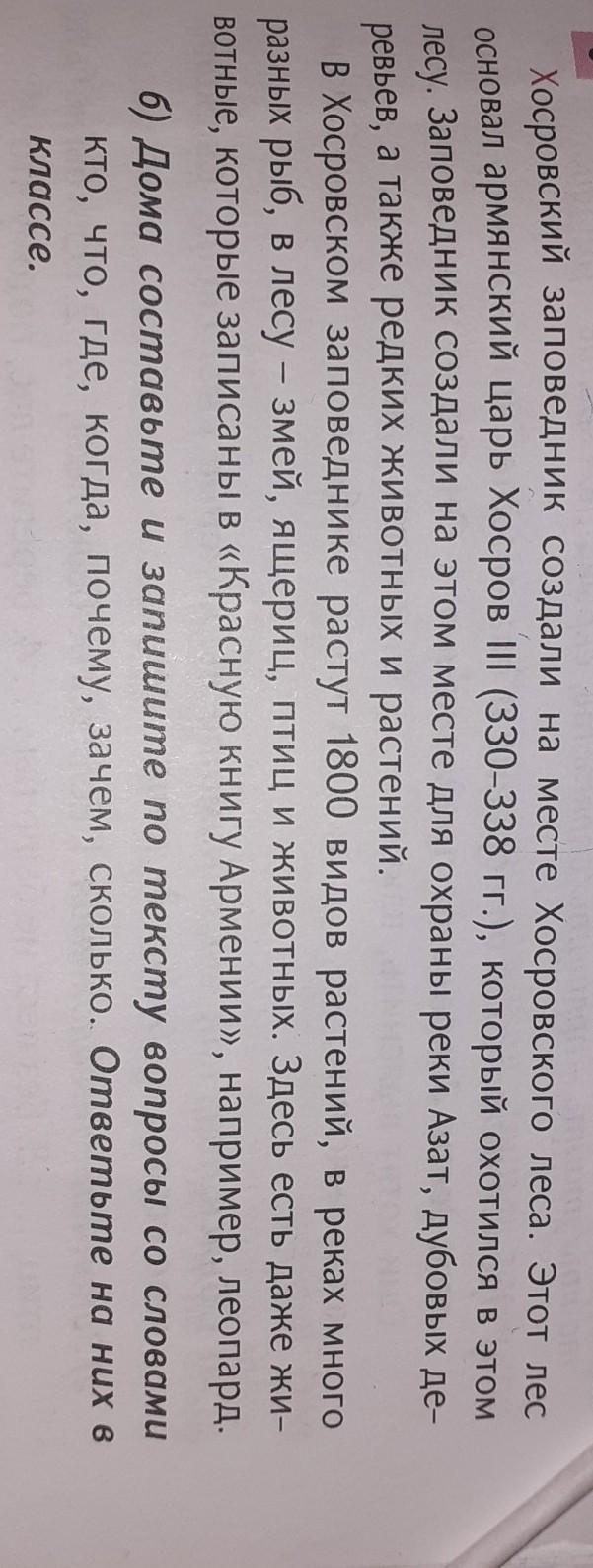Объяснение:1. Хосров III; 2. Для охраны реки Азат, дубовых деревьев, редких животных и растений; 3. Основали на месте Хосровского леса.