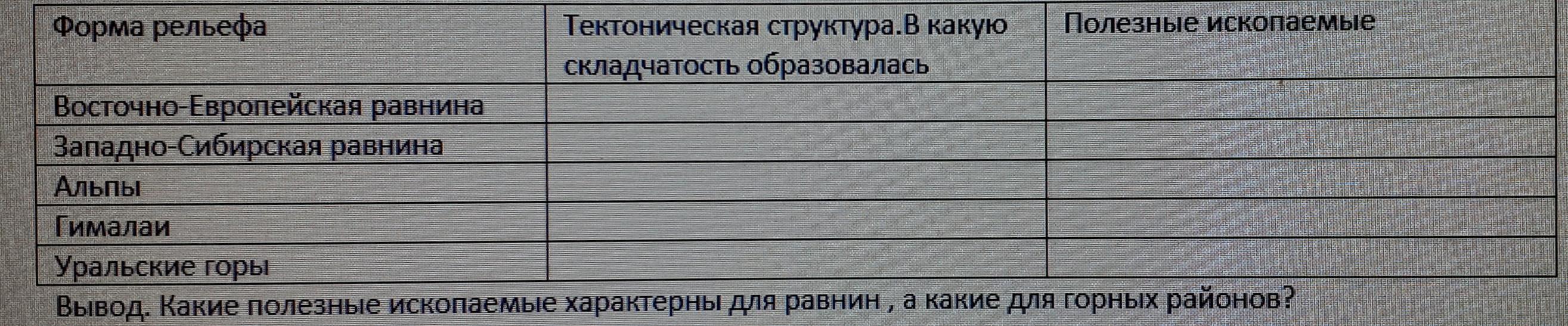 Вывод: Для Альп характерны такие полезные ископаемые как... и т. д.
