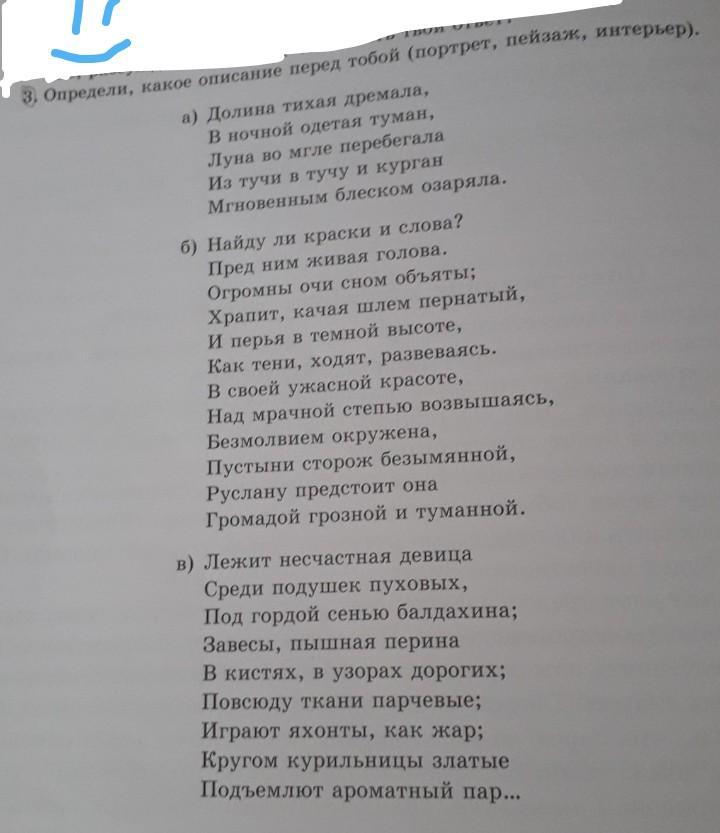 3. Опредилите, какое описание перед тобой (портрет,пейзаж, интерер)
