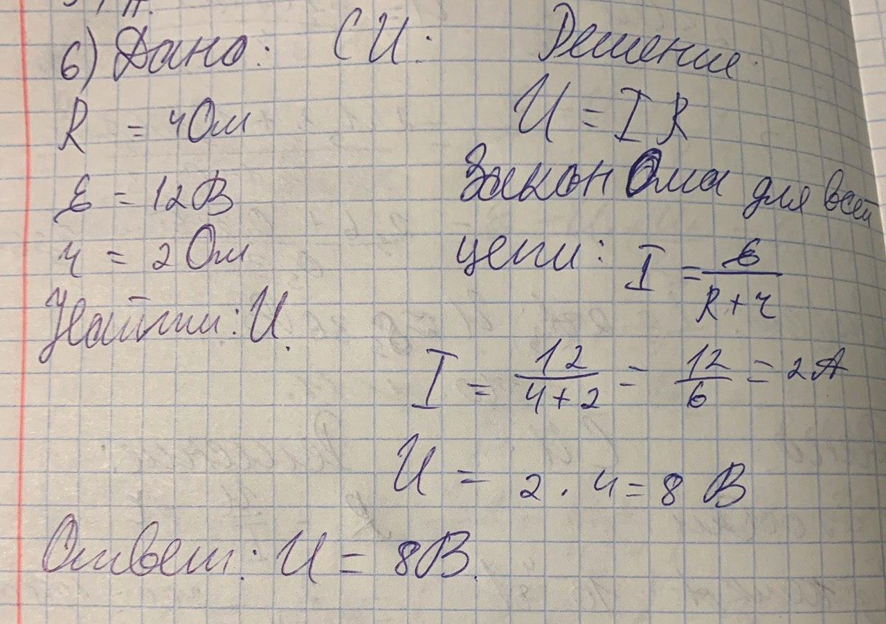 Электрическая цепь состоит из резистора с сопротивлением 4 Ом и источника тока с ЭДС 12 В и внутренним сопротивлением 2 Ом . Определите падение напряжения резистора в вольтах .