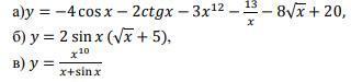 в) y' = x⁹(sinx -xcosx)/(x+sinx)²