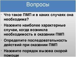 Первая медицинская помощь (ПМП) — комплекс экстренных медицинских мероприятий, проводимых внезапно заболевшему или пострадавшему на месте происшествия и в период доставки его в медицинское учреждение.
