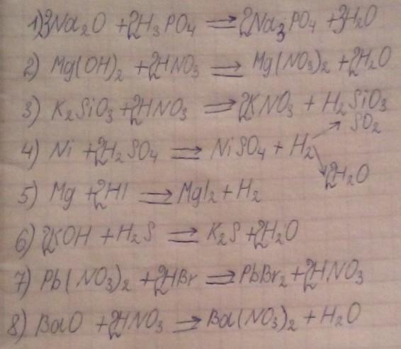 1. Закончите уравнения химических реакций, укажите реакции нейтрализации: