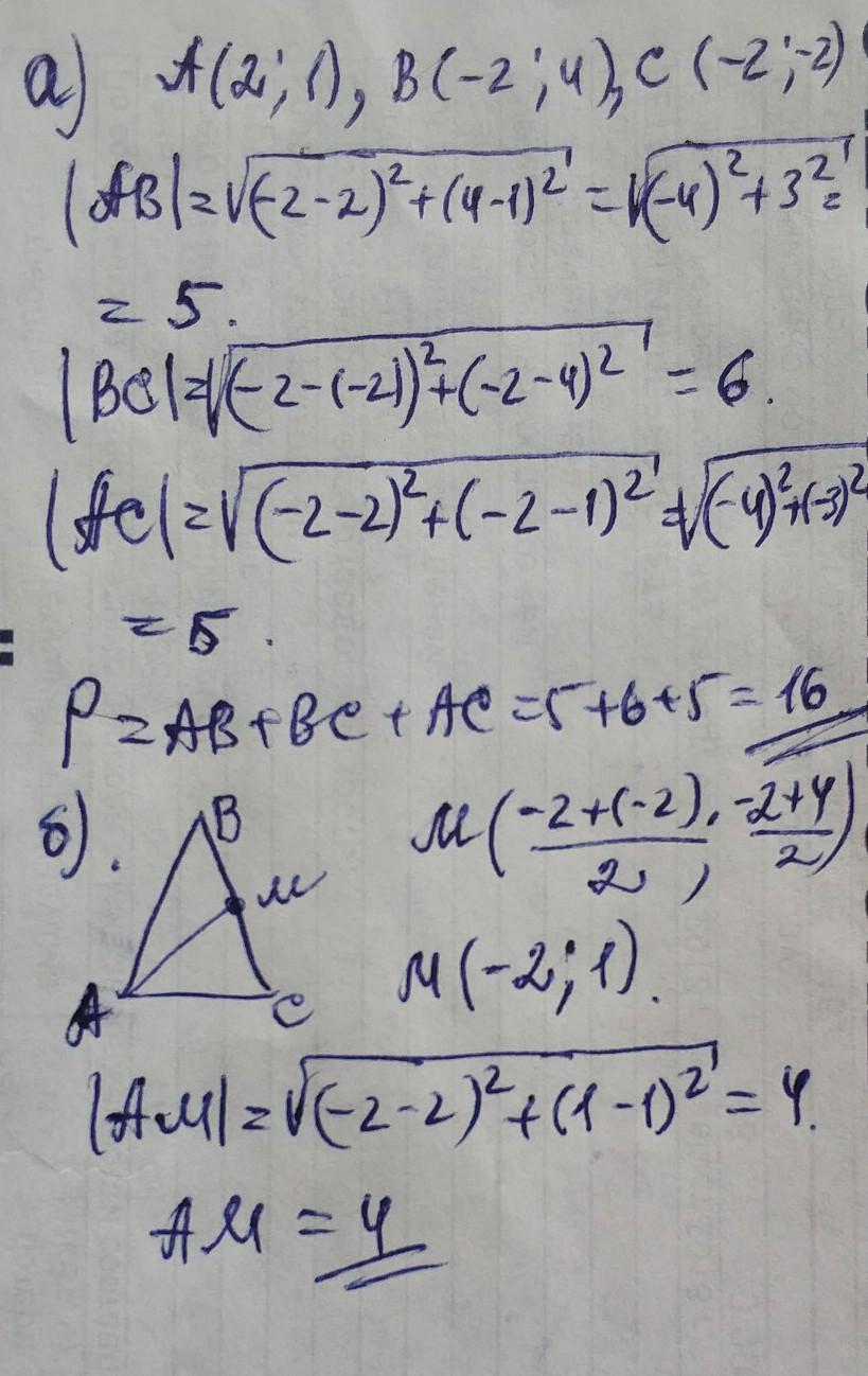 Дан треугольник А(2;1), В(-2;4), С(-2;-2).