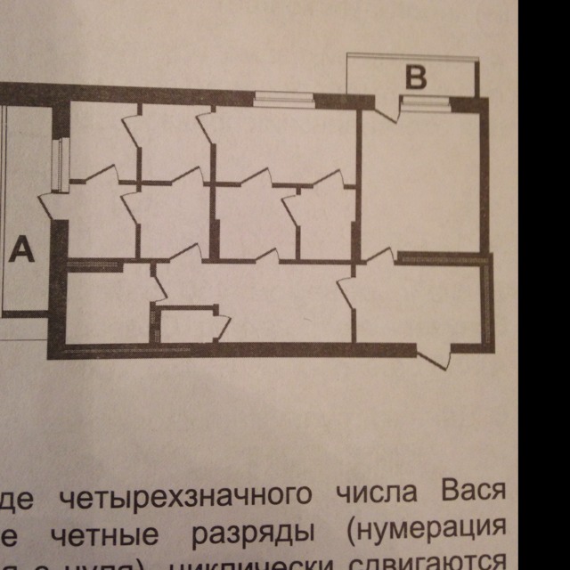 Байтик и Программка решили купить квартиру. При выборе они решили идентифицировать каждую квартиру числом Z = (x+y) в квадрате, где x - наименьшее число дверных проемов, которые необходимо преодолеть, чтобы попасть с балкона А на балкон В (дважды через один проем проходить нельзя), у - наибольшее число проемов с тем де свойством и тем же ограничением. Чему равно это число для представленной квартиры?