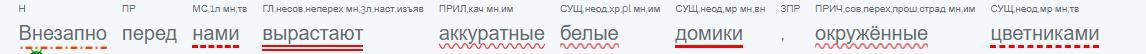 "Внезапно перед нами вырастают аккуратные белые домики, окружённые цветниками."синтаксический разбор предложения4