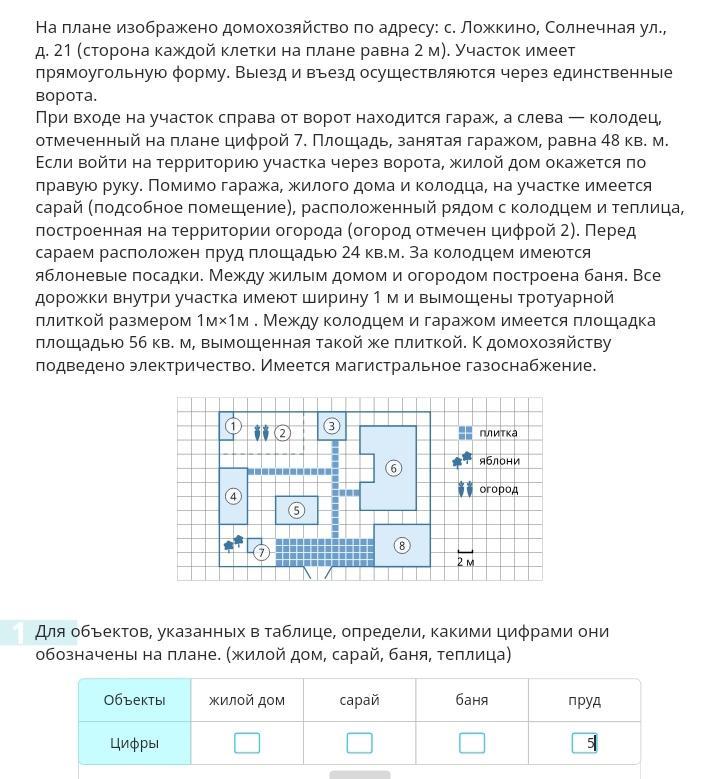 Баня—3, Жилой дом—6, Пруд—5, Сарай—4.