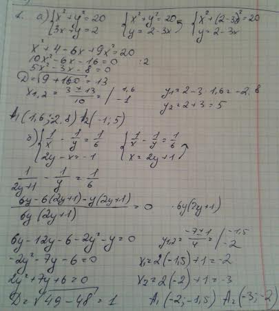а)x^2+y^2=20 б)1/x-1/y=1/6