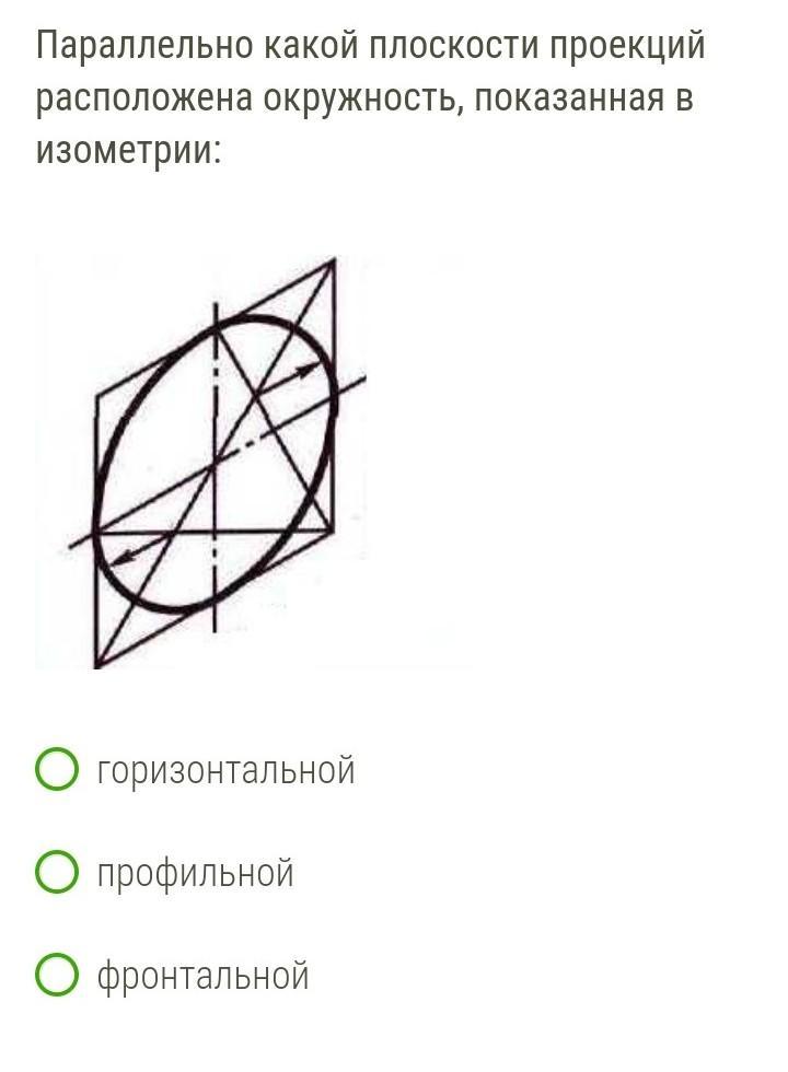 Ответ: Окружность параллельна фронтальной плоскости, т.к. она лежит в плоскости ХZ.