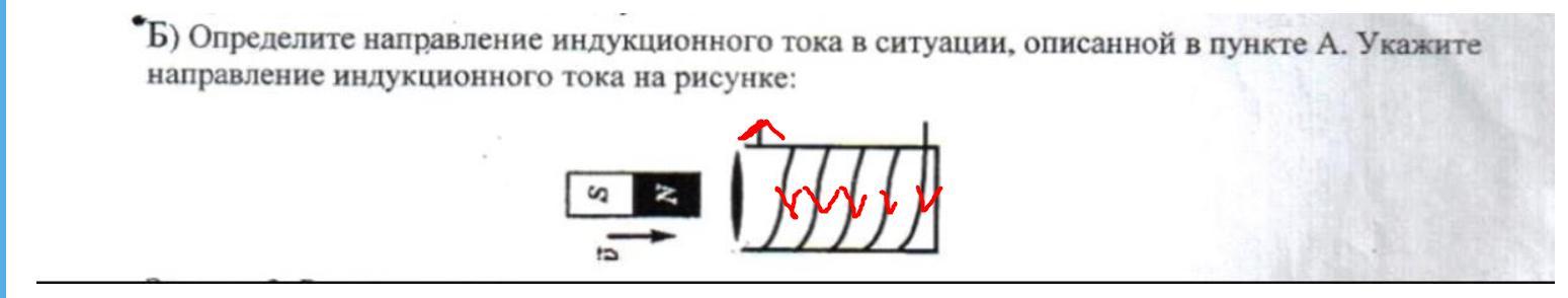 Объяснение: Магнитные линии выходят из северного полюса и входят в южный. Вектор магнитной индукции направлен по касательной вправо. По правилу правой руки определяем, что ток течет так