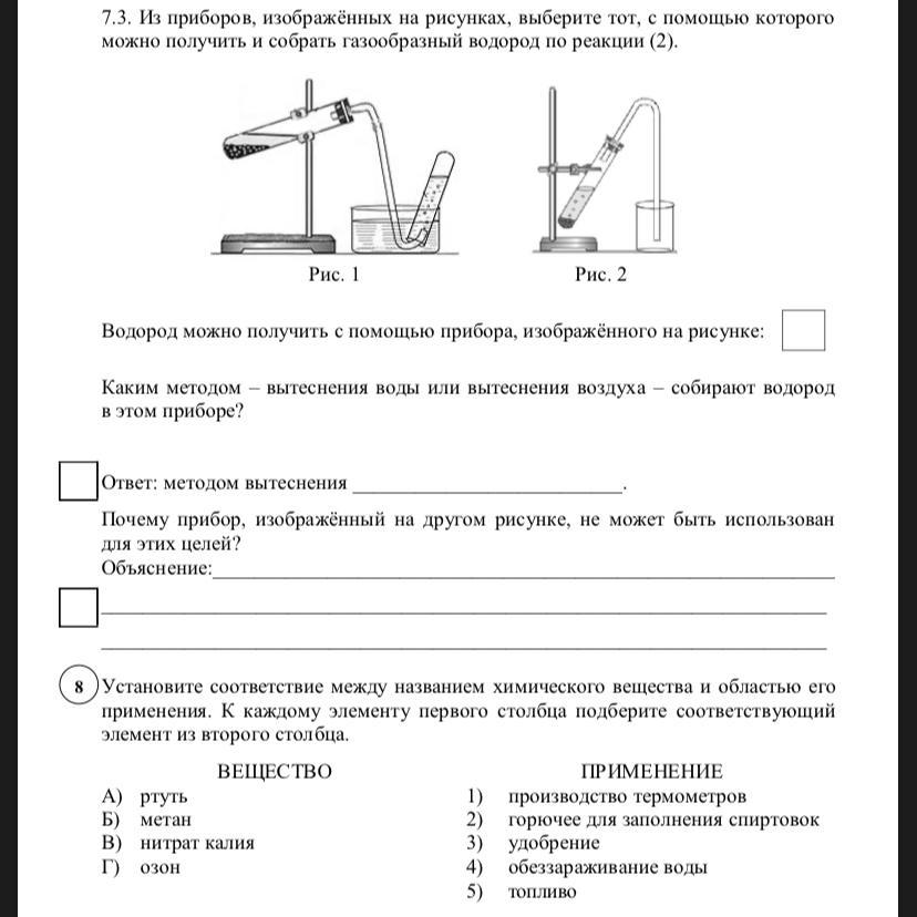 другой прибор не подходит, так как масса водорода(2) меньше средней массы воздуха(29). и если пробирка будет дном вниз, то водород просто улетит.