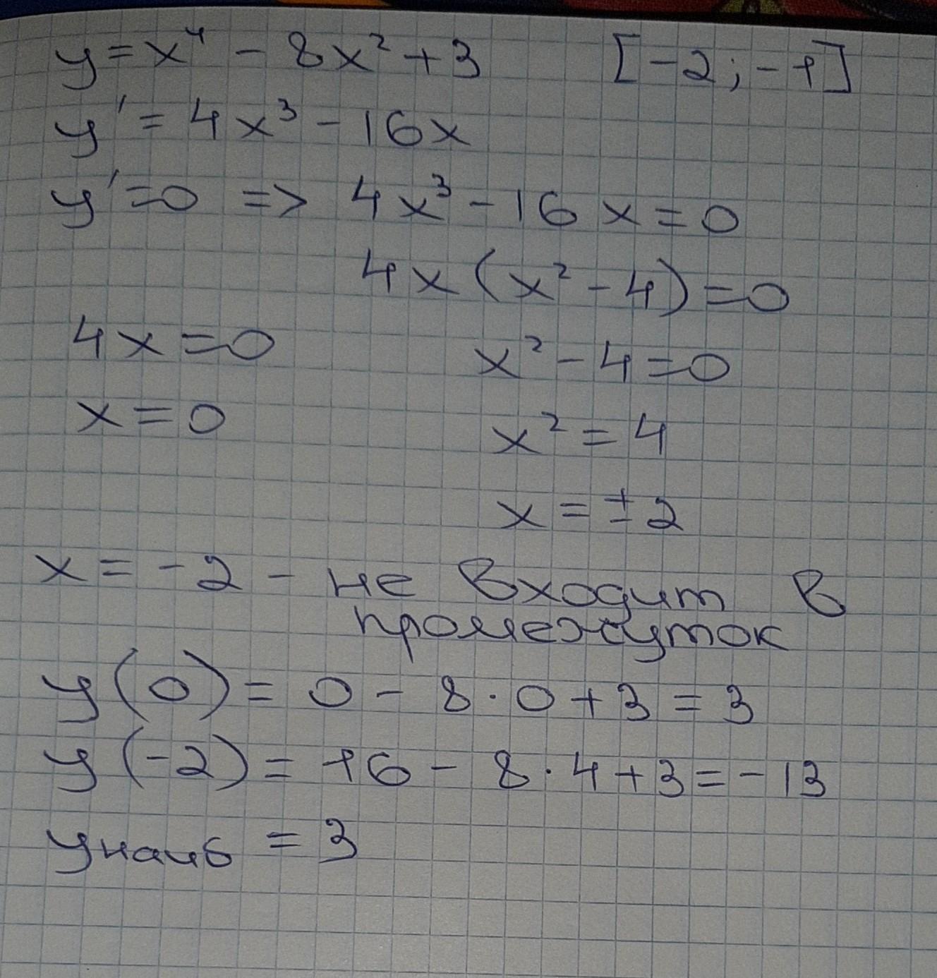 У=х4-8х2+3, на промежутке [-2 ; -1]