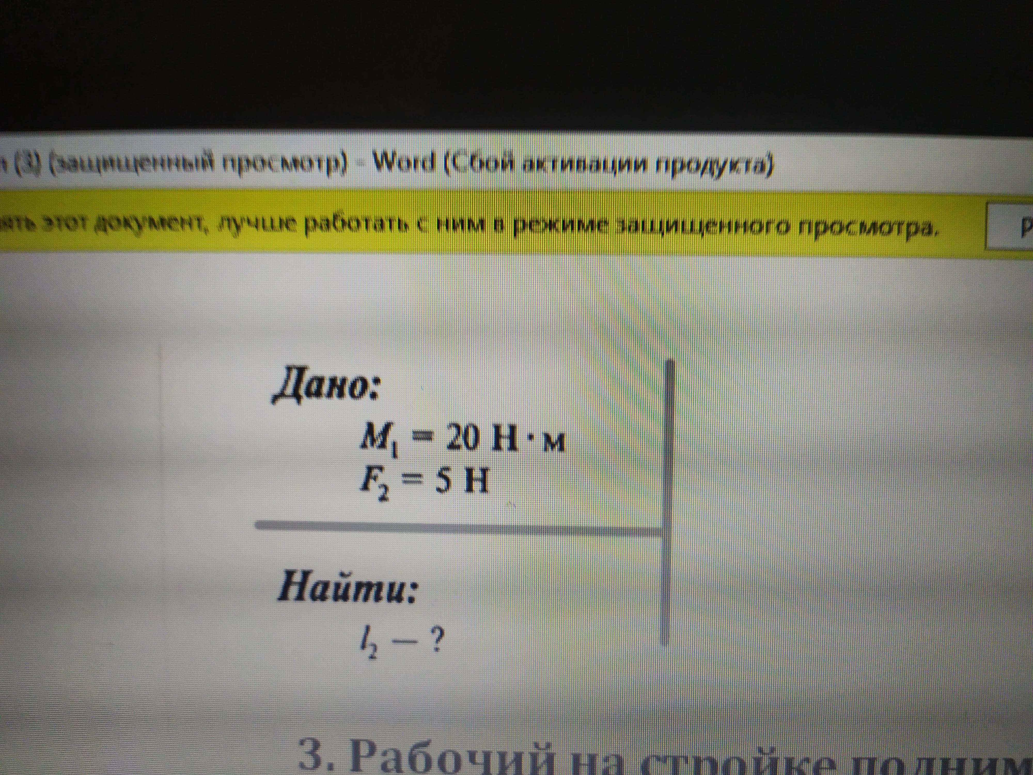 M₁=F₂l₂⇒l₂=M₁/F₂=20/5=4м