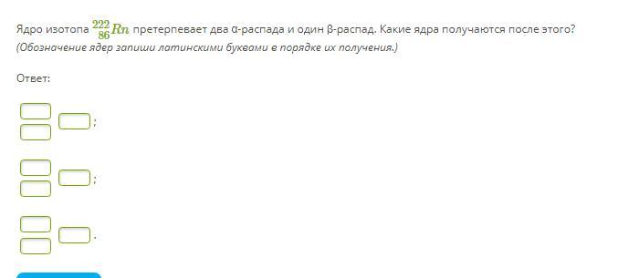 Ядро изотопа Rn 86 223 претерпевает два α-распада и один β-распад. Какие ядра получаются после этого? a тут что получается тогда ?