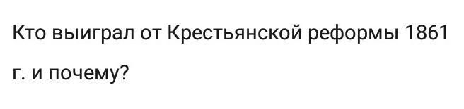Судьбоносная крестьянская реформа 1861 года была подготовлена и проведена императором Александром Вторым. Ее задачей было вывести всех крестьян империи из личной зависимости от помещиков, наделив их землей путем продажи ее с помощью различных ссуд. Эта реформа принесла пользу всему крестьянскому сословию, хотя многие были недовольны и не принимали освобождения, так как в силу привычки были не готовы к этому, остальные с радостью встретили этот манифест. Само освобождение дало толчок поднятию экономики и уже к концу 19 века государство считалось одним из передовы