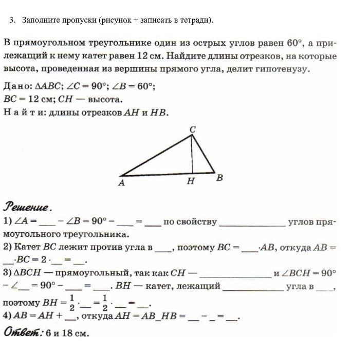 3)-высота, B, -60, =30, против, в 30, BC, *12=6см.