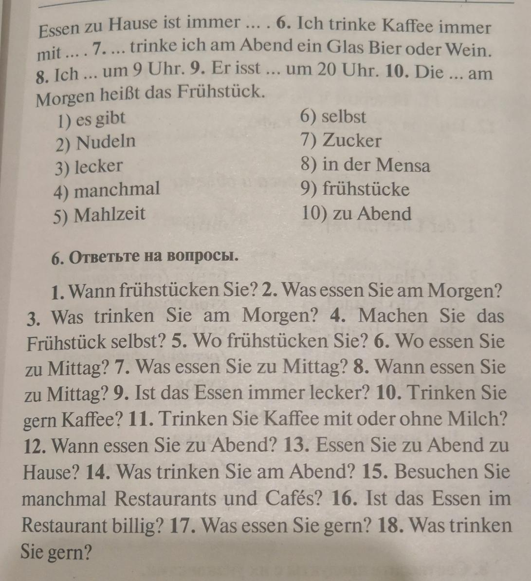 4. Nein, das Früstückt macht für mich meine Mutter.