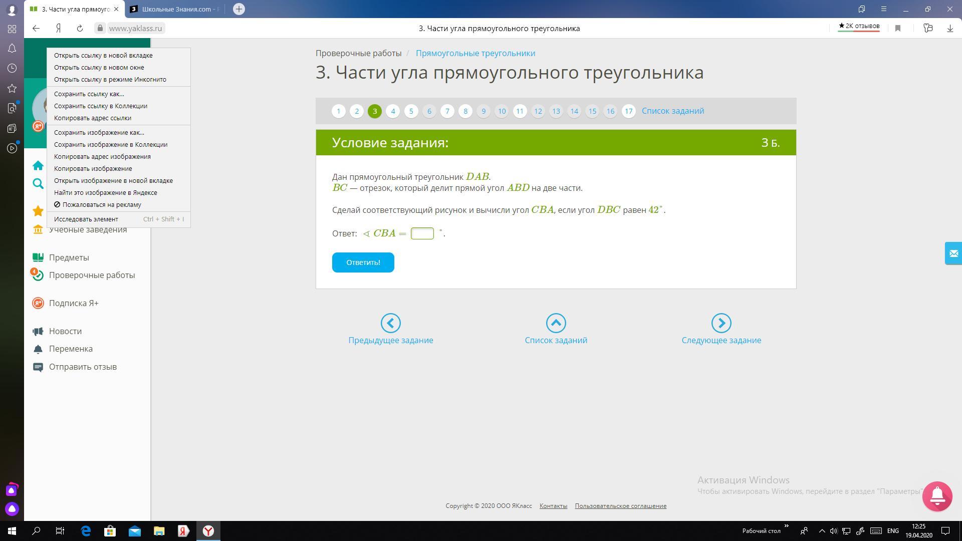 Объяснение:в прямоугольном треугольнике прямой угол = 90 градусов ...