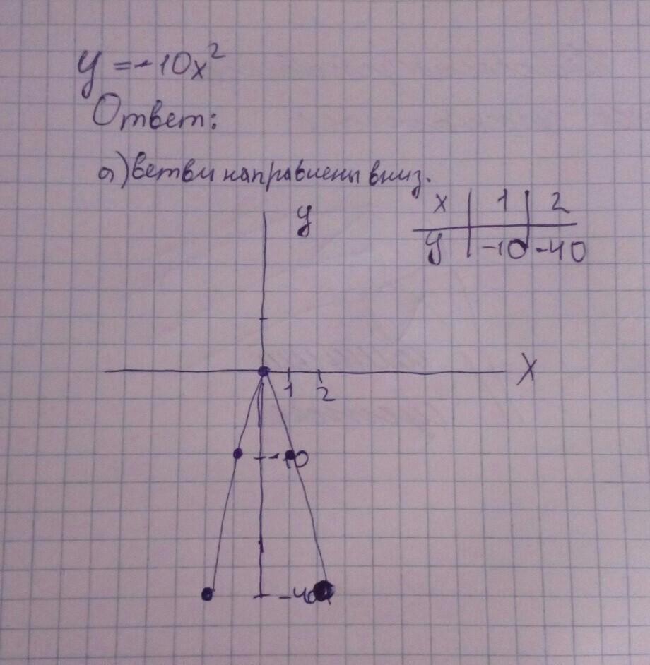 Функция задана формулой y=−10x2. Определите направление ветвей графика данной функции — параболы: