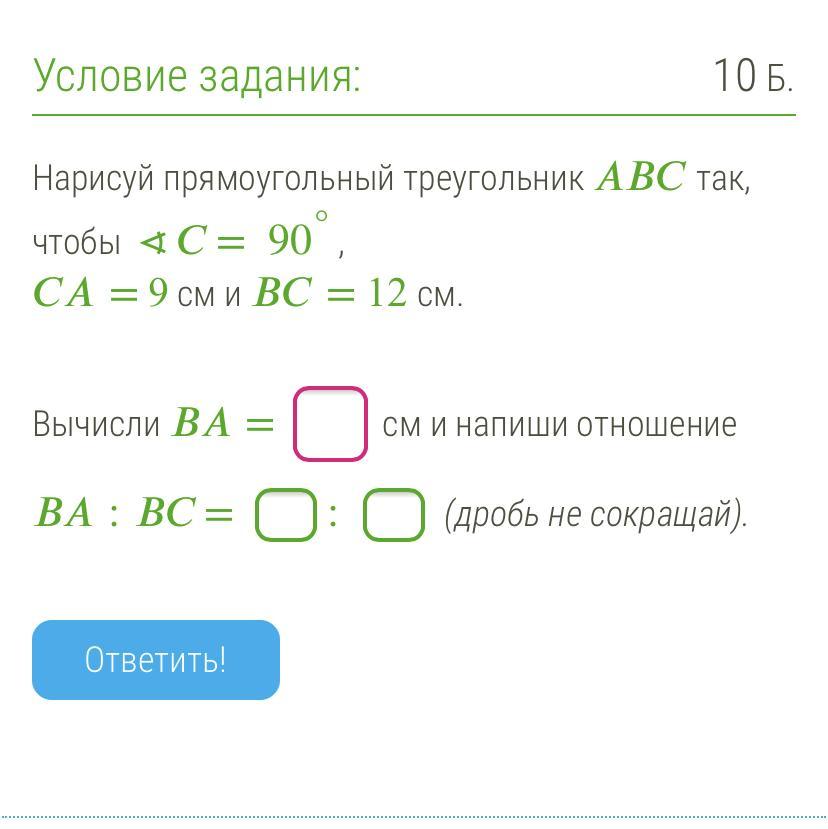 BA=корень из 225=15.