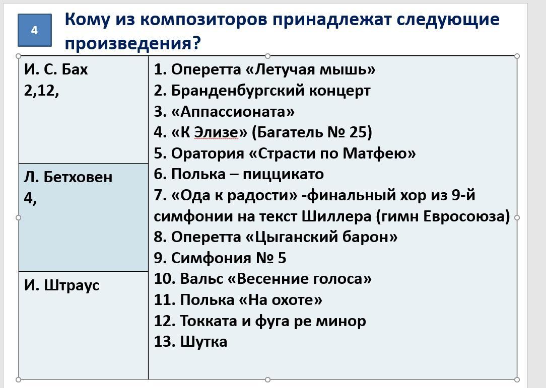 Л.Бетховен: 3, 4, 7, 9, 13.