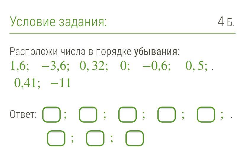 1,6 ; 0,5 ; 0,41 ; 0,32 ; 0 ; -0,6 ; -3,6 ; - 11