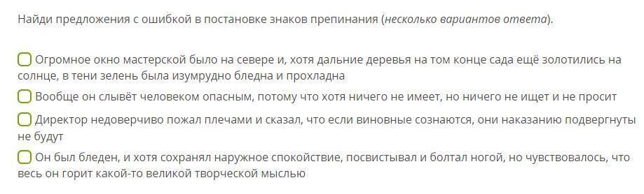 Найди предложения с ошибкой в постановке знаков препинания (несколько вариантов ответа).