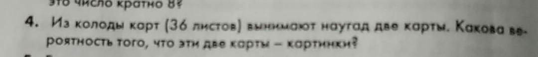 В колоде всего 16 карт с картинкой: 4 туза, 4 короля, 4 дамы и 4 вальта. Получаем вероятность 16/36. Сокращаем: 16/36 : 4 = 4/9