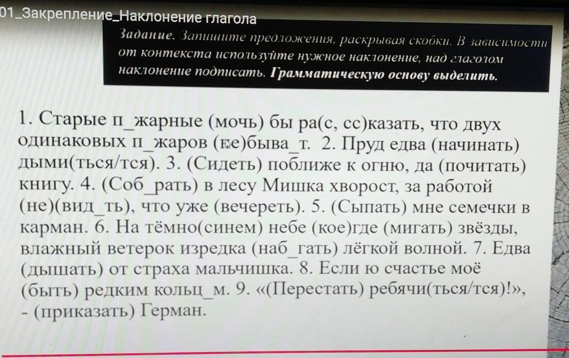 Собирает в лесу Мишка хворост, за работой не видит, что уже вечереет (изъявительное)