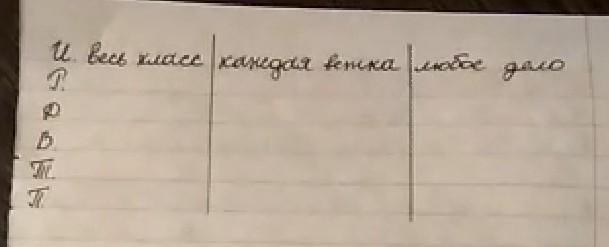 В.п.: весь класс, каждую ветку, любое дело.