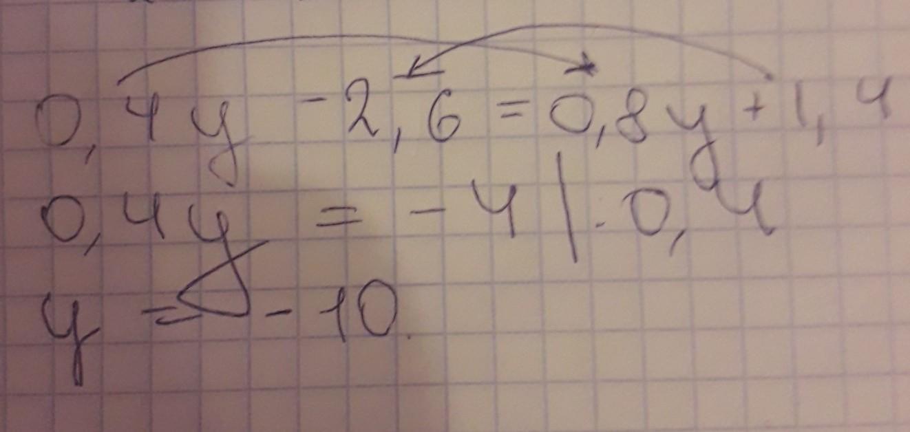 0,4у-2,6=0,8у+1,4