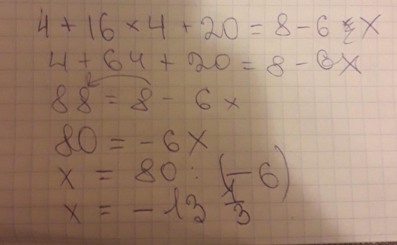 4+16×4+20=8-6х
